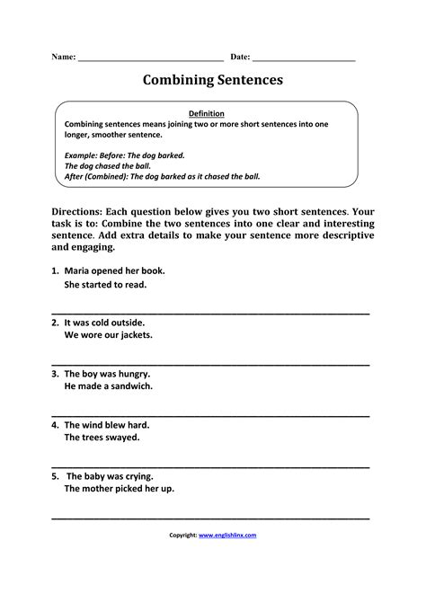 Web Free Sentence Combining Practice Printable Reading Writing Worksheets For 4Th Grade Students.